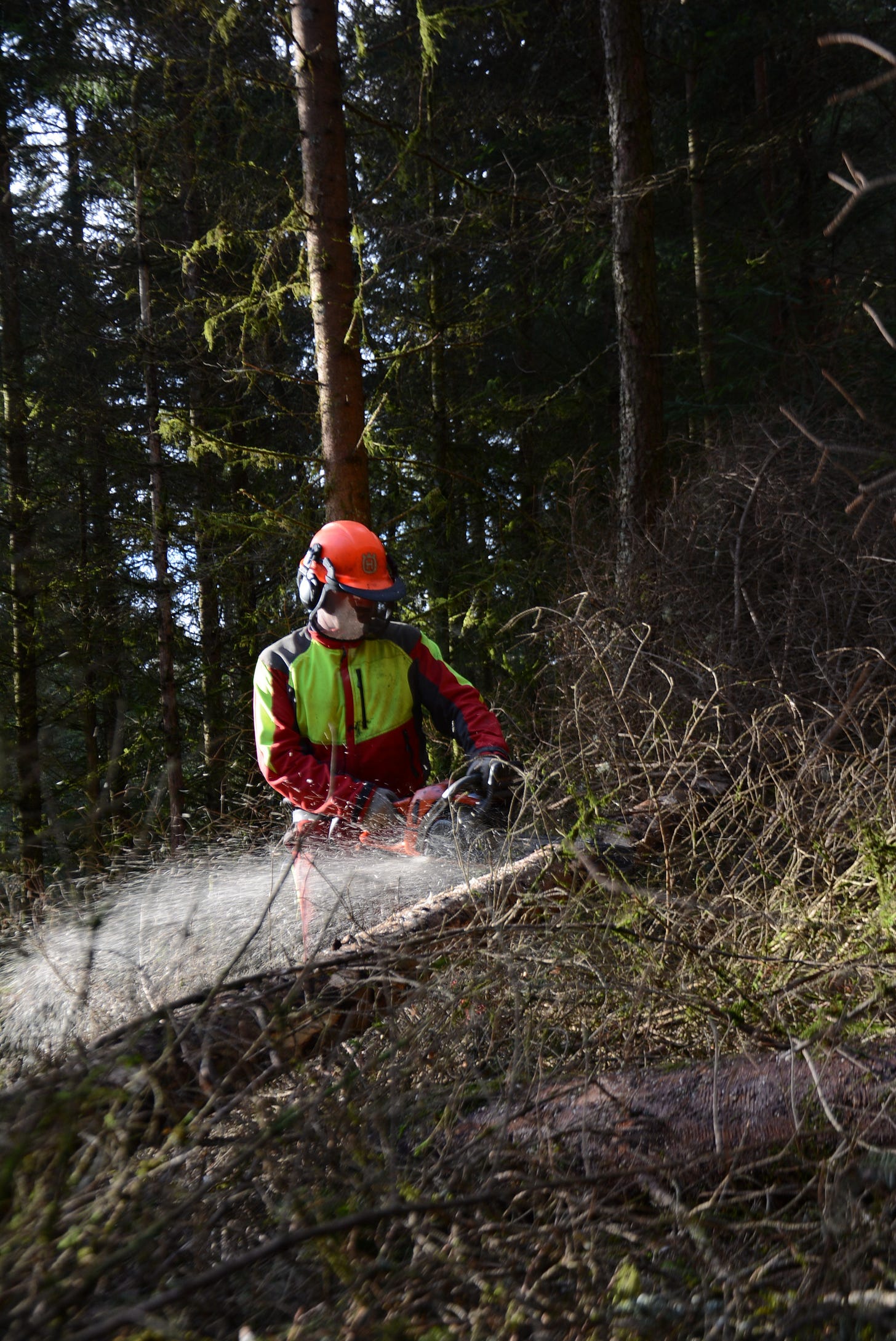 Approaching from the division supervisor and task force's right came two chippers and trucks. They paused at the intersection and called the division supervisor to confirm the plan, and they drove down the street and parked in the two different spots envisioned earlier. The division supervisor and the task force leaned forward in their seats, anxiously waiting to see what would happen as two chippers entered the division. Except for those actively operating a chainsaw or loading the front loader, heads turned to acknowledge the presence of the solution to the trees cut into manageable round pieces.